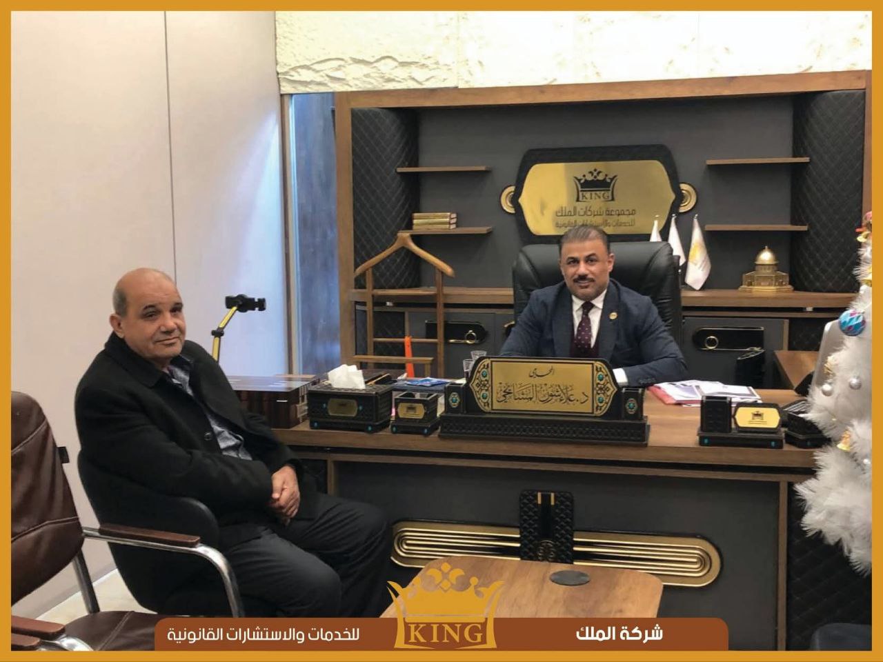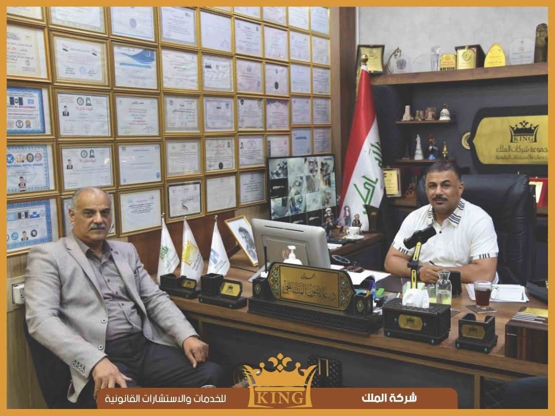 زيارة الدكتور علاء شون المدير المفوض لشركة الملك للخدمات و الاستشارات القانونية برفقة الدكتورة رفاه الزوبعي عضو مجلس محافظة بغداد الى كلية النسور الجامعة و لقاء رئيس الجامعة الدكتور عبد الجواد كاظم حيث جرى الحديث حول واقع التعليم و آليات تطويره و