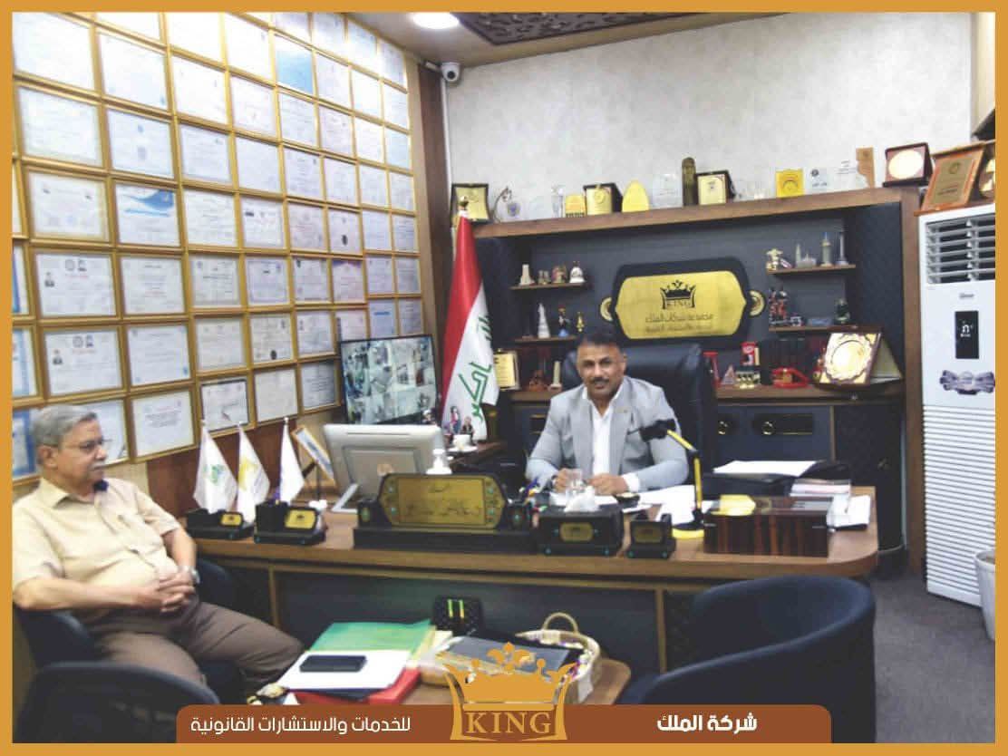 زيارة احد الموكلين الى شركتنا ولقاء الدكتور علاء شون المدير المفوض لشركة الملك للخدمات والاستشارات القانونية وجرى الحديث حول اخر تطورات العمل الخاصة بموضوعه وبيان الآليات المتبعة من قبلنا بغية انجاز العمل